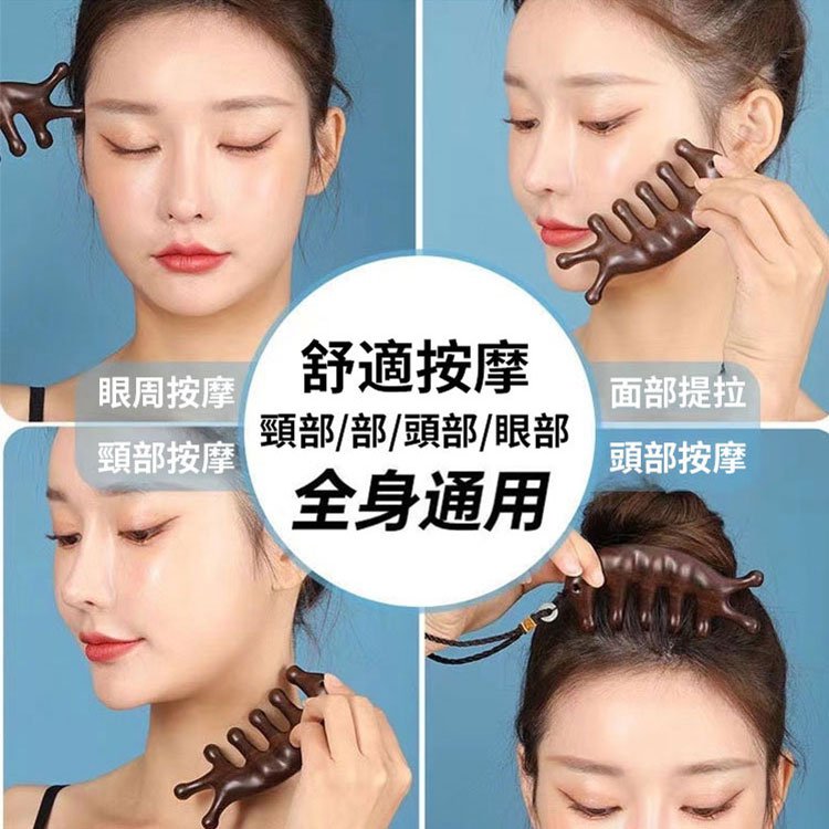 2分鐘前天然檀木美容經絡按摩梳 ◀頭臉按摩◀疏通經絡◀刮痧排毒 按摩穴位促進排毒,面部提拉緊緻 - 【緩解頭痛,按出健康】5入組HK$346