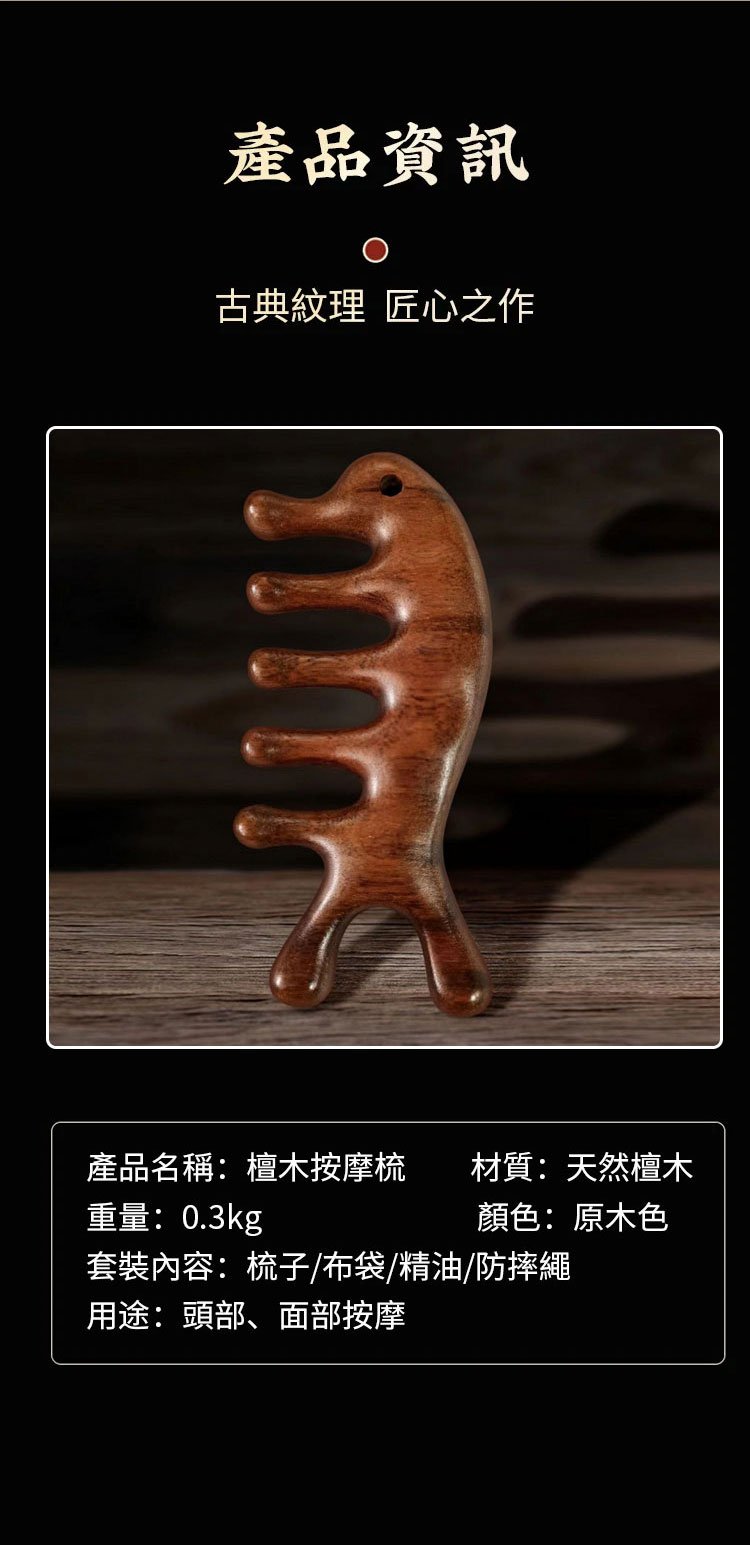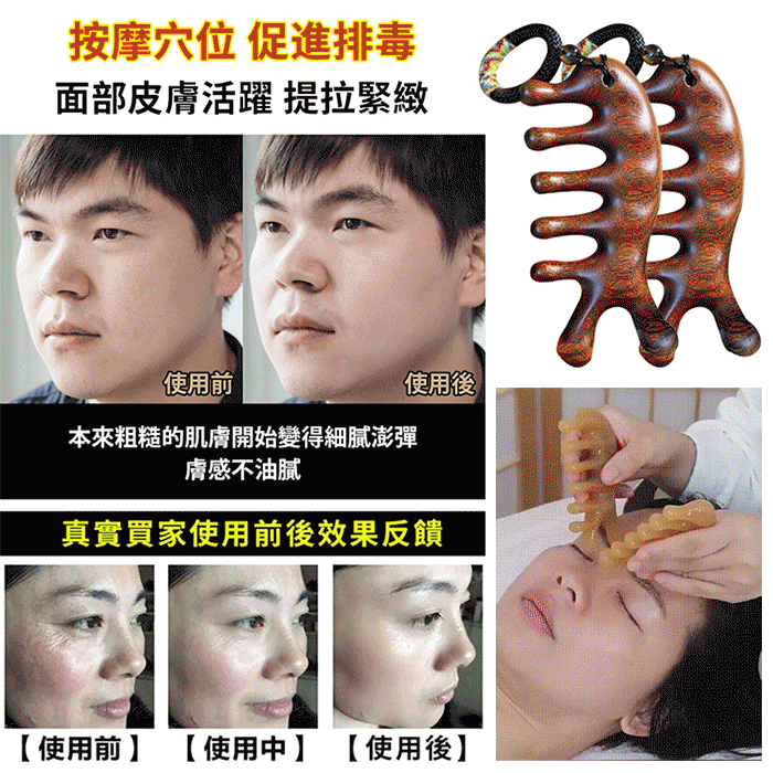 4分鐘前天然檀木美容經絡按摩梳 ◀頭臉按摩◀疏通經絡◀刮痧排毒 按摩穴位促進排毒,面部提拉緊緻 - 【疏通經絡,刮痧排毒】3入組HK$296